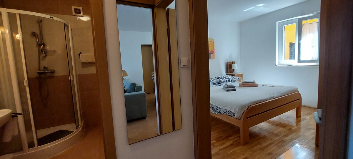 Willkommen in unserer Ferienwohnung am Meer, nur 100 m vom Meer und Strand. Dieses Apartment im Erdgeschoss bietet Platz für bis zu 6 Gäste und ist somit ein idealer Rückzugsort für Familien und Freunde. Die Wohnung verfügt über zwei Schlafzimmer mit Doppelbett. Das Wohnzimmer verfügt über eine Couch, die sich in ein Doppelbett verwandeln lässt und zusätzlichen Schlafplatz für Gäste bietet. Mit seiner erstklassigen Lage, komfortablen Annehmlichkeiten, diese Ferienwohnung einen idyllischen Urlaub