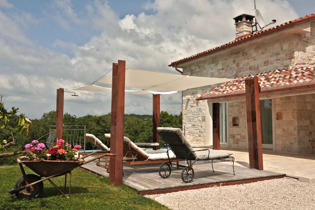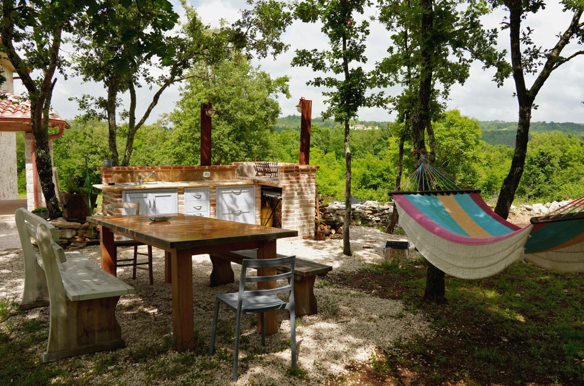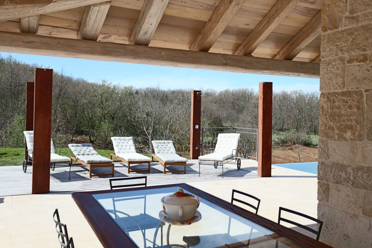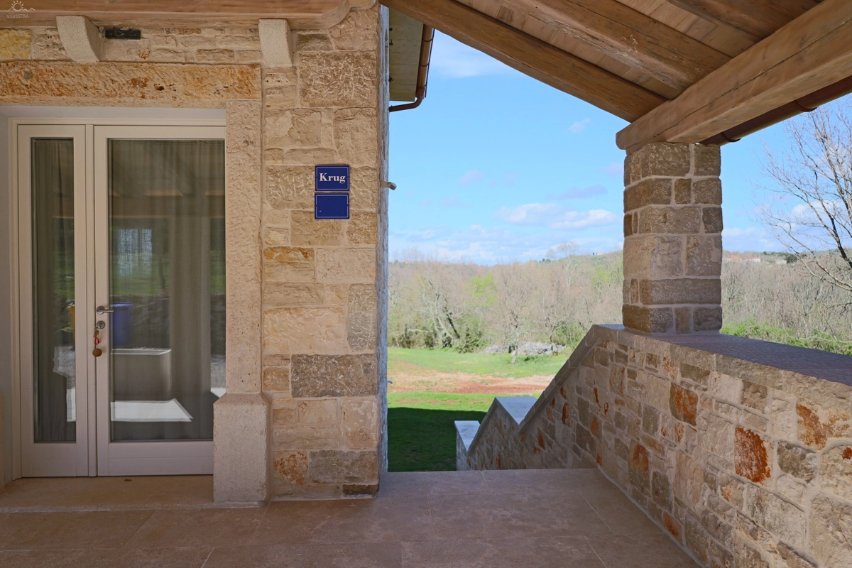 Willkommen in der Villa Krug, einer neu erbauten istrischen Steinvilla, die ein bezauberndes Urlaubserlebnis verspricht. Dieser reizvolle Zufluchtsort liegt in einem ruhigen kleinen Dorf, umgeben von grüner Natur und bietet seinen Gästen Frieden und Ruhe.