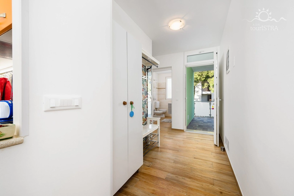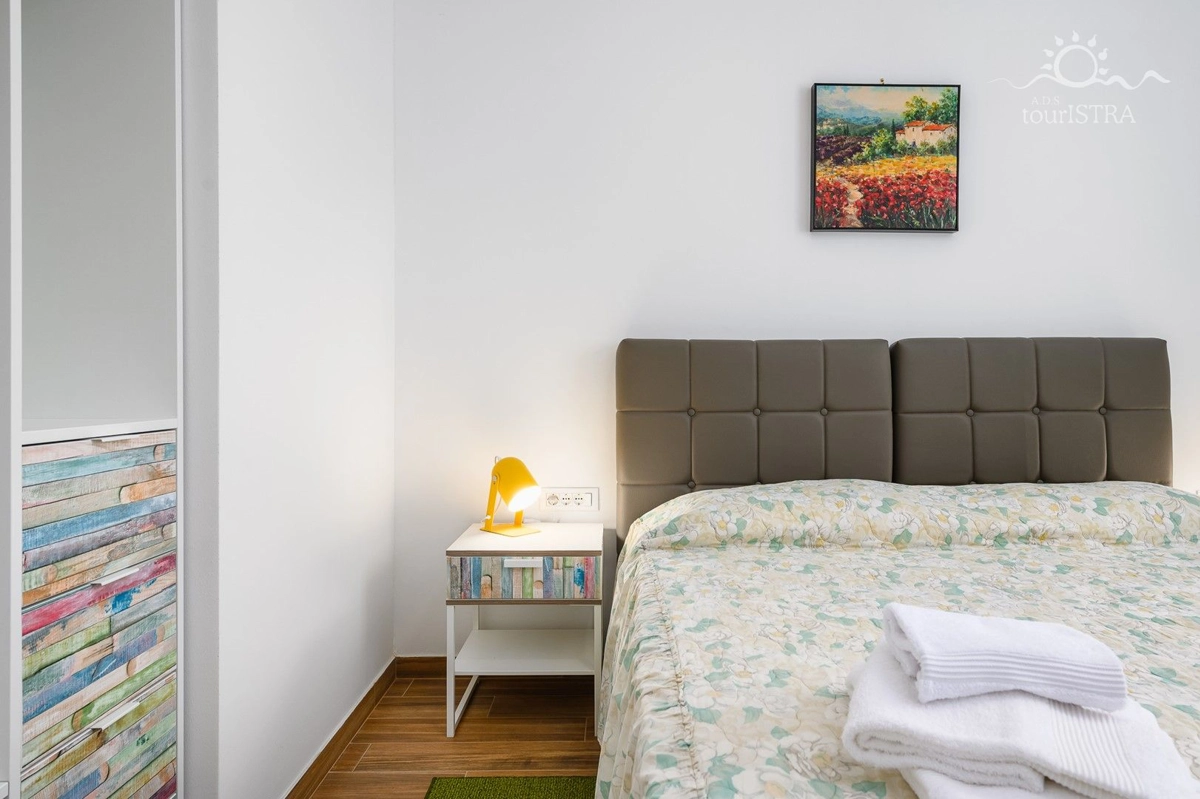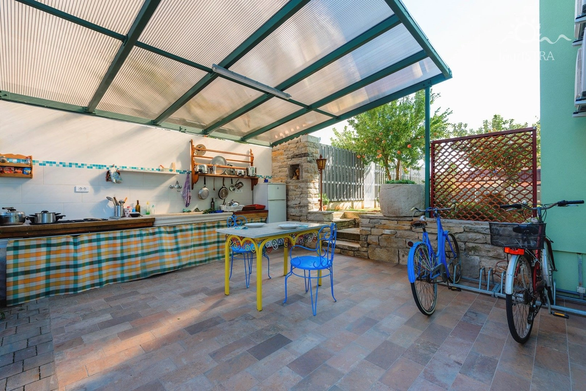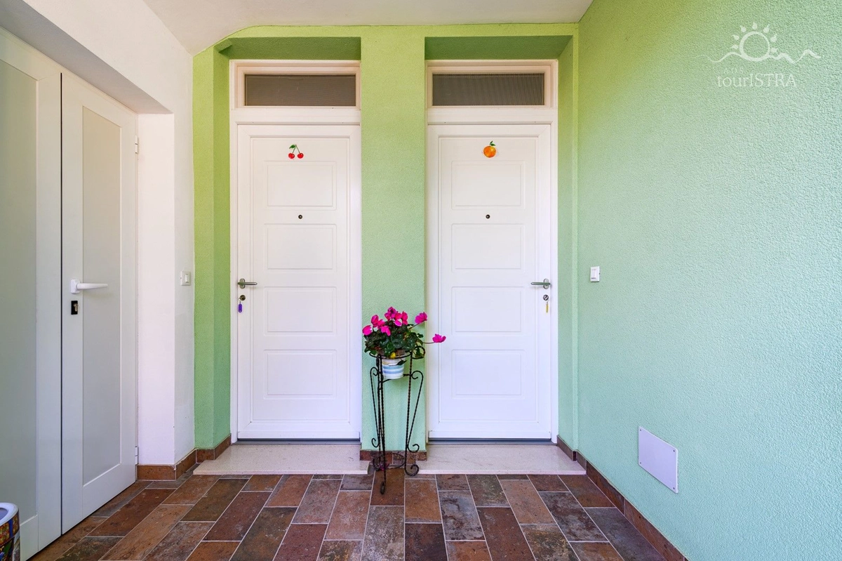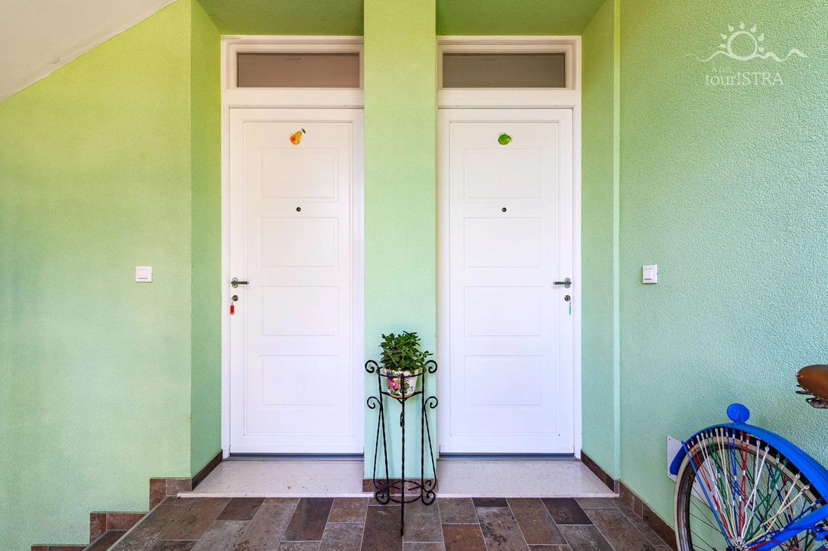 Povoljno smo smješteni u rezidencijalnom/turističkom području Umaga, u blizini niza plaža, prekrasne šetnice uz more, marine za jahte i restorana. Dva apartmana su u prizemlju s terasom i izlazom na vrt, dok su druga dva na prvom katu kuće s balkonima okrenutim prema vrtu. U našoj kući možete uživati u druženju u zajedničkoj vanjskoj ljetnoj kuhinji sa roštiljem. Za Vašu udobnost imamo perilicu i sušilicu rublja u zajedničkom dijelu nekretnine koje su Vam na raspolaganju. Naši gosti imaju besplatno privatno parkiralište u sklopu objekta. Svi apartmani su opremljeni sa dvije klima jedinice, jednom u spavaćoj i jednoj u dnevnom dijelu, flat tv-om sa satelitskim programima, wi-fi internet vezom, posteljinom i setom ručnika bez nadoplate.