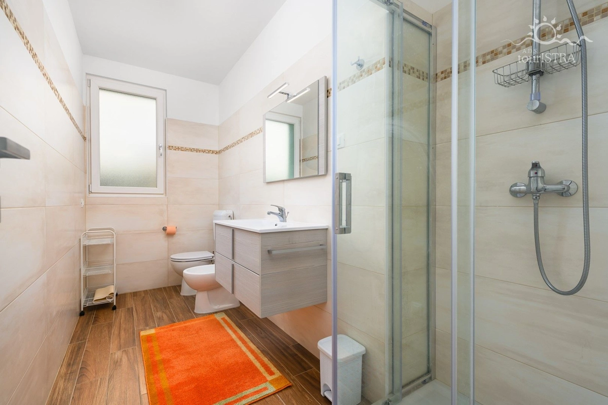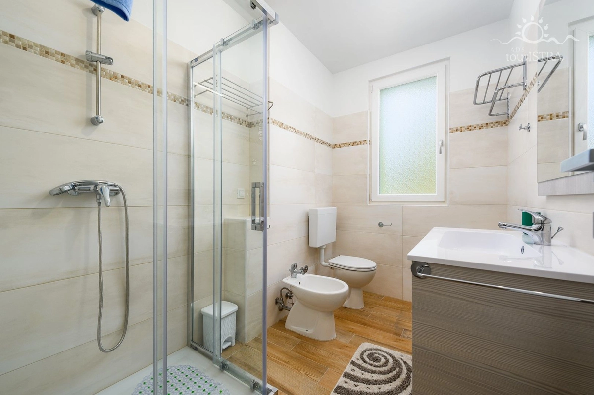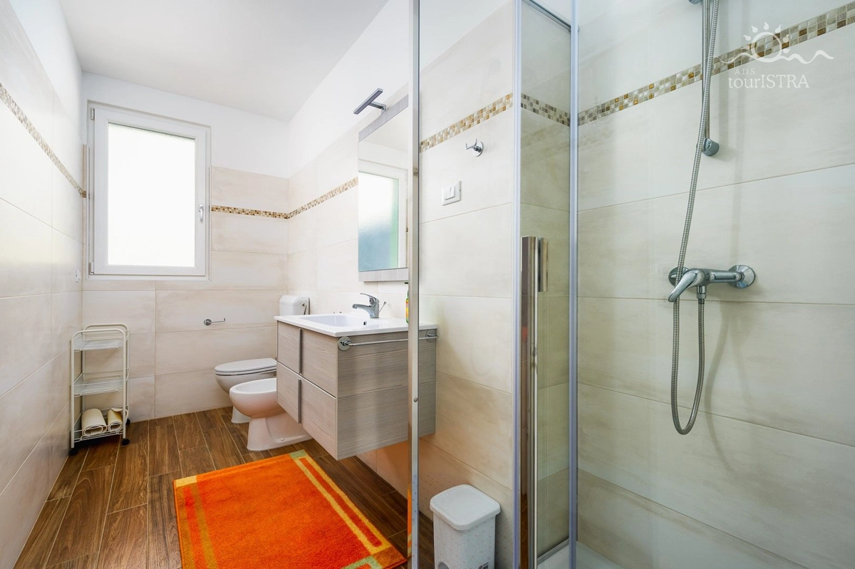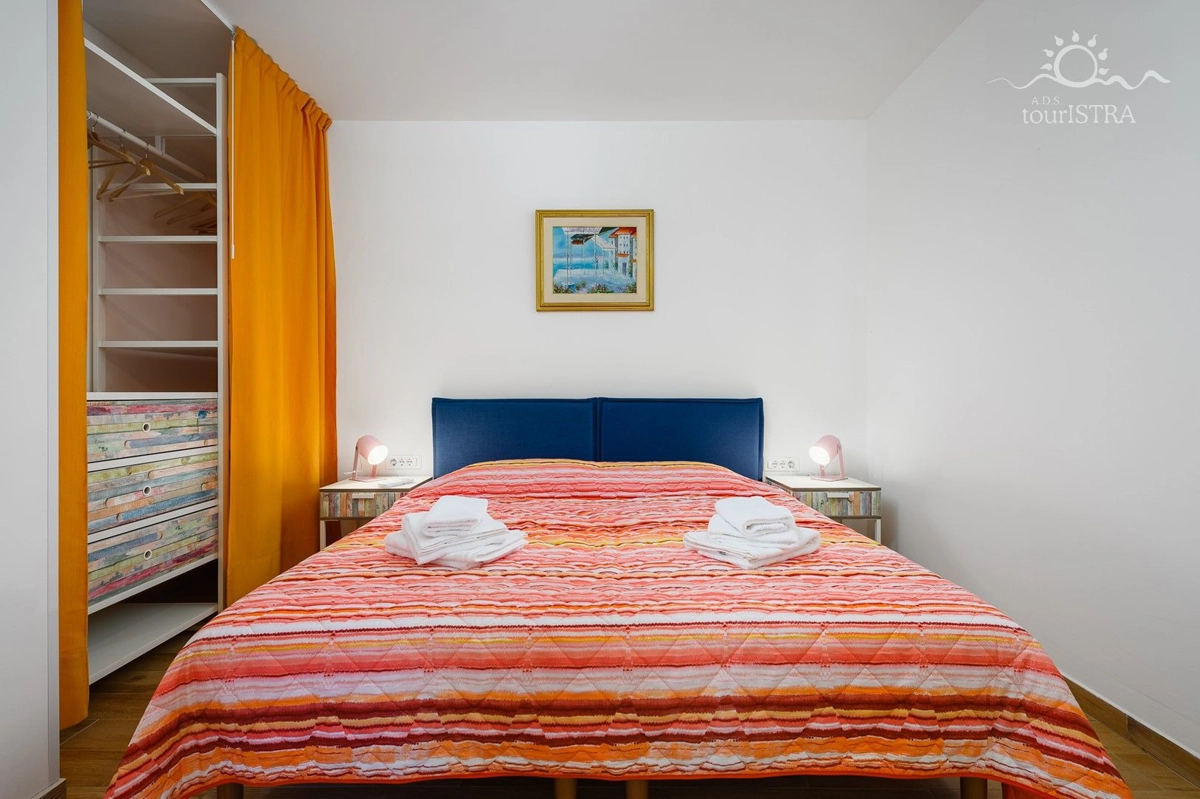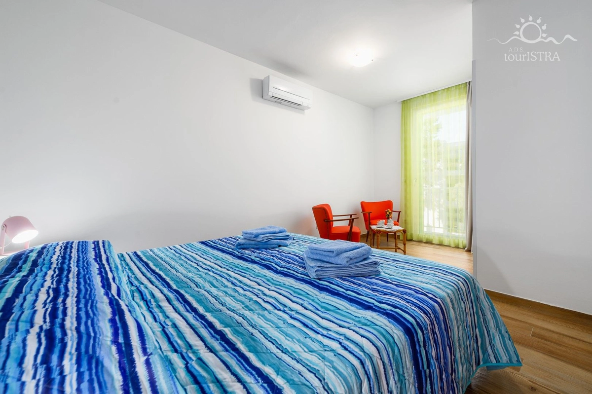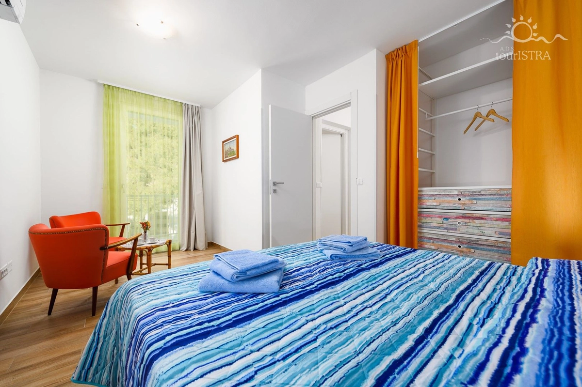 Povoljno smo smješteni u rezidencijalnom/turističkom području Umaga, u blizini niza plaža, prekrasne šetnice uz more, marine za jahte i restorana. Dva apartmana su u prizemlju s terasom i izlazom na vrt, dok su druga dva na prvom katu kuće s balkonima okrenutim prema vrtu. U našoj kući možete uživati u druženju u zajedničkoj vanjskoj ljetnoj kuhinji sa roštiljem. Za Vašu udobnost imamo perilicu i sušilicu rublja u zajedničkom dijelu nekretnine koje su Vam na raspolaganju. Naši gosti imaju besplatno privatno parkiralište u sklopu objekta. Svi apartmani su opremljeni sa dvije klima jedinice, jednom u spavaćoj i jednoj u dnevnom dijelu, flat tv-om sa satelitskim programima, wi-fi internet vezom, posteljinom i setom ručnika bez nadoplate.