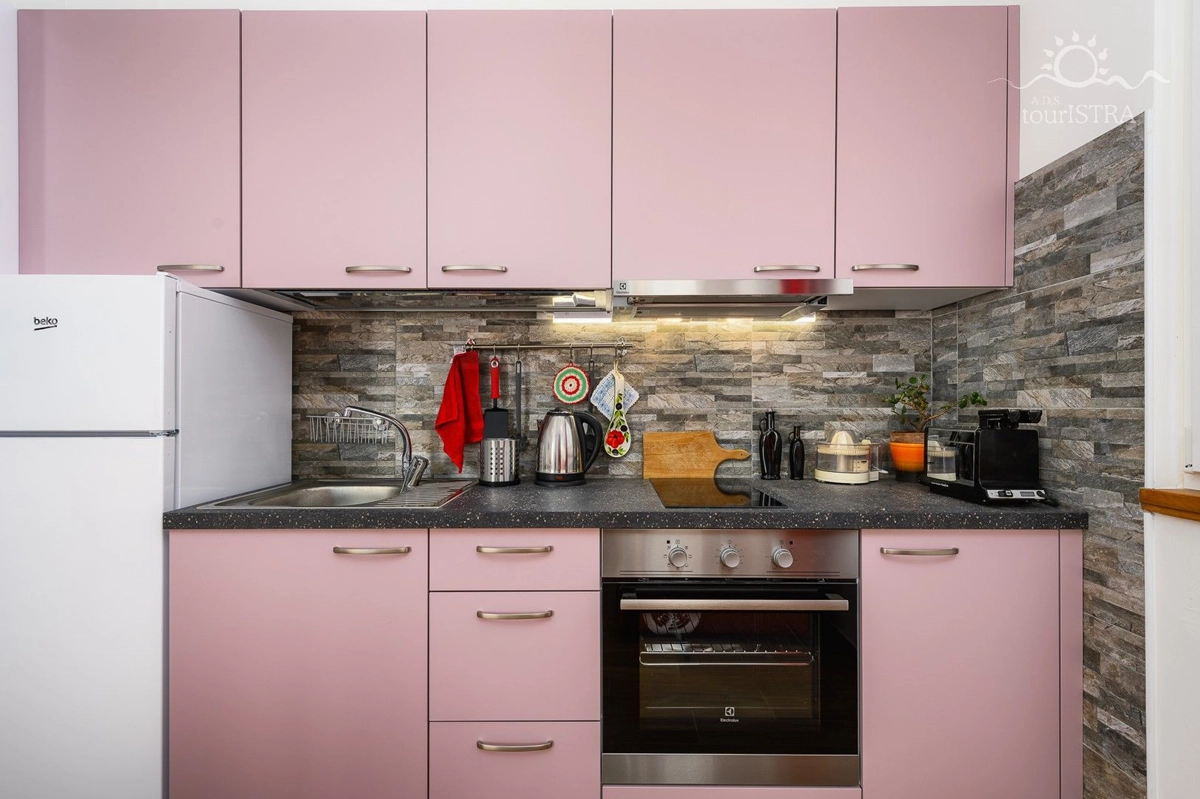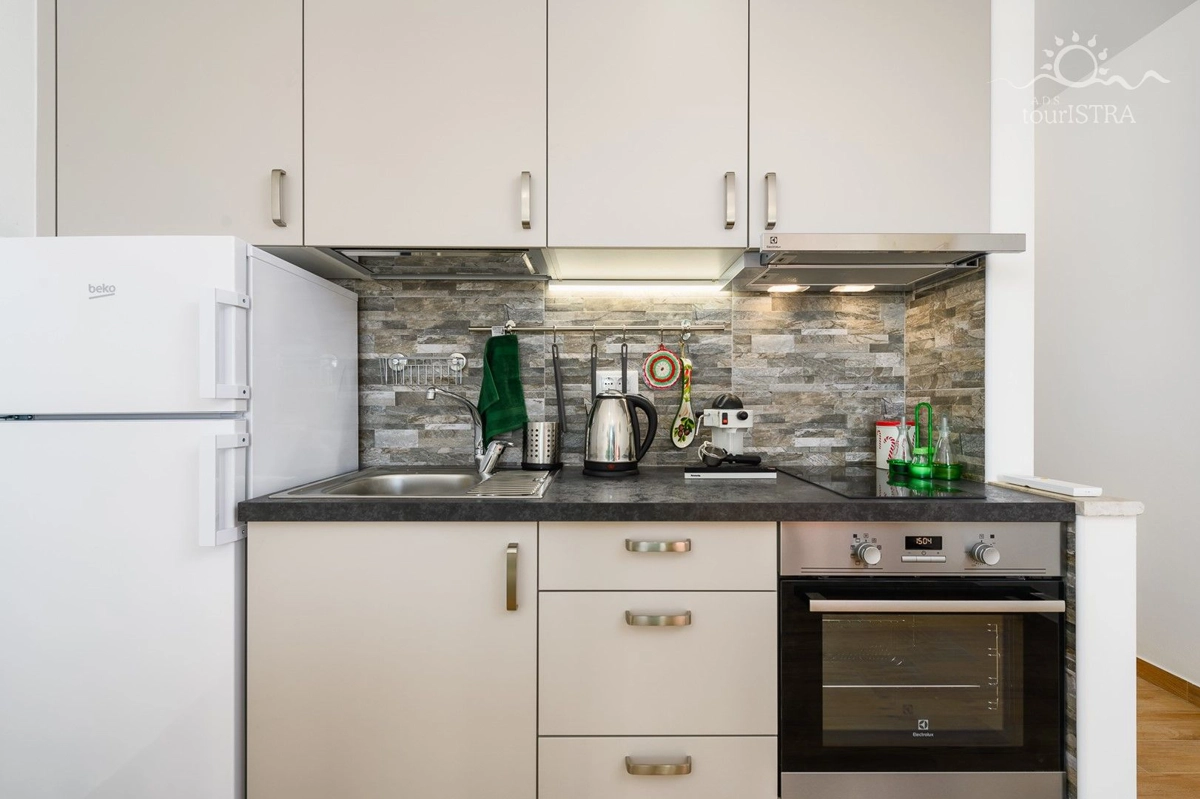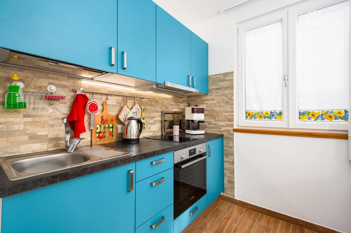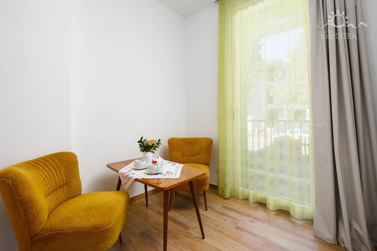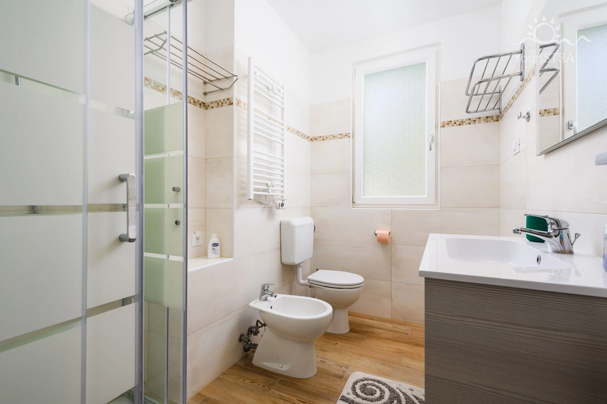 Povoljno smo smješteni u rezidencijalnom/turističkom području Umaga, u blizini niza plaža, prekrasne šetnice uz more, marine za jahte i restorana. Dva apartmana su u prizemlju s terasom i izlazom na vrt, dok su druga dva na prvom katu kuće s balkonima okrenutim prema vrtu. U našoj kući možete uživati u druženju u zajedničkoj vanjskoj ljetnoj kuhinji sa roštiljem. Za Vašu udobnost imamo perilicu i sušilicu rublja u zajedničkom dijelu nekretnine koje su Vam na raspolaganju. Naši gosti imaju besplatno privatno parkiralište u sklopu objekta. Svi apartmani su opremljeni sa dvije klima jedinice, jednom u spavaćoj i jednoj u dnevnom dijelu, flat tv-om sa satelitskim programima, wi-fi internet vezom, posteljinom i setom ručnika bez nadoplate.