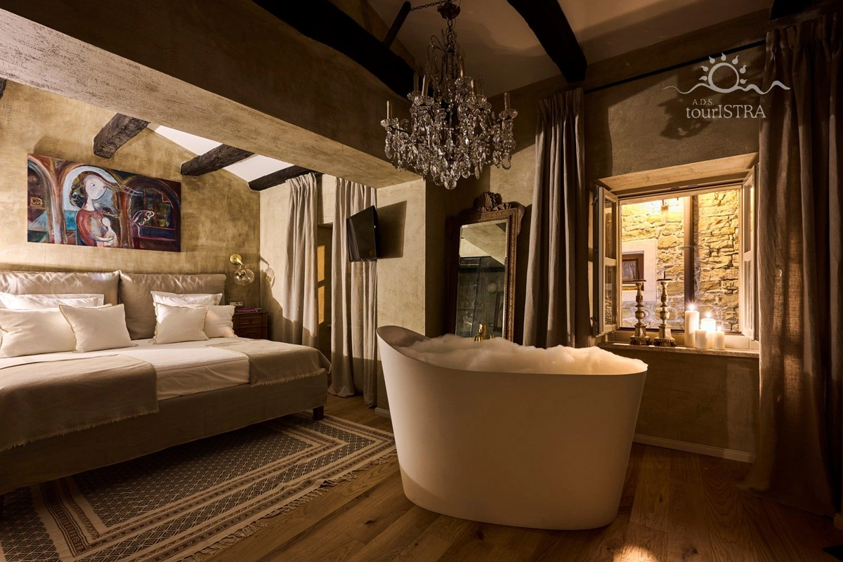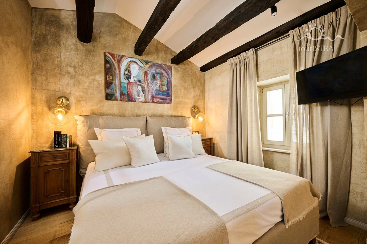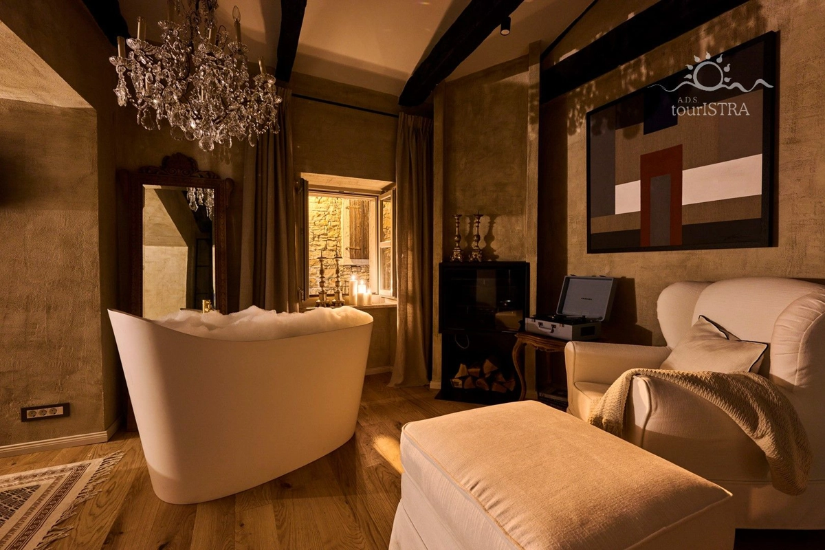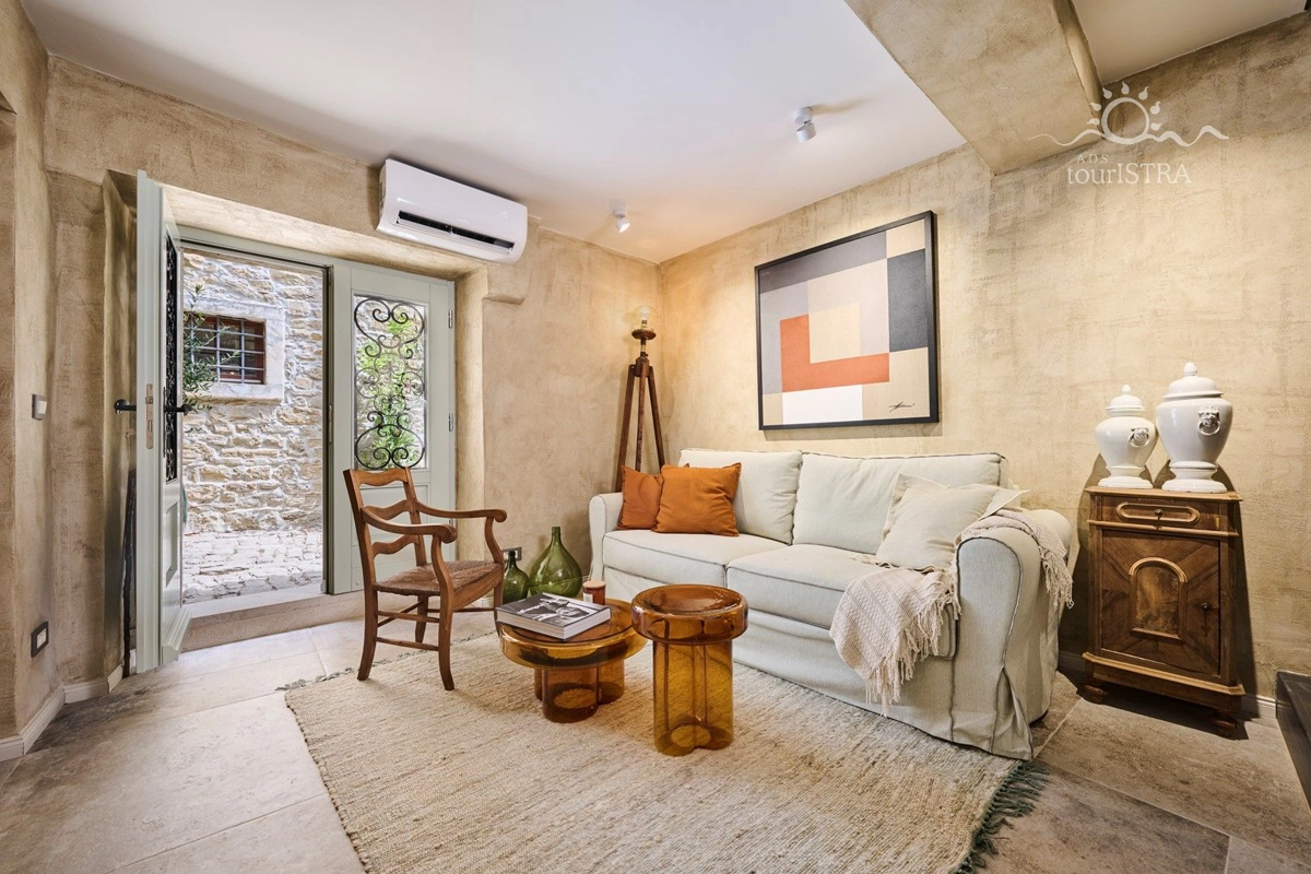 ... i stani! Duboko udahni. Osjetite strast i romantiku ove prekrasne kuće smještene u srednjovjekovnom gradu Grožnjanu, koju su otkrili i oživjeli umjetnici. Pažljivo dizajniran i uređen s minimalnim detaljima kako bi probudio sva vaša osjetila. Doživite nezaboravan bijeg u ovom malom dragulju smještenom u jednoj od kamenom popločanih uskih ulica ispunjenih umjetničkim galerijama i trgovinama, kušaonicama vina, restoranima, trgovinama starih zanata i okruženim pogledima koji oduzimaju dah. Razmazite sebe i svoju voljenu osobu i osigurajte si nezaboravan odmor koji će Vam ostati zauvijek. Ako tražite potpuno romantično iskustvo, ne tražite više. Upravo ste ga pronašli.