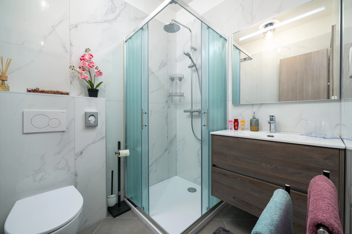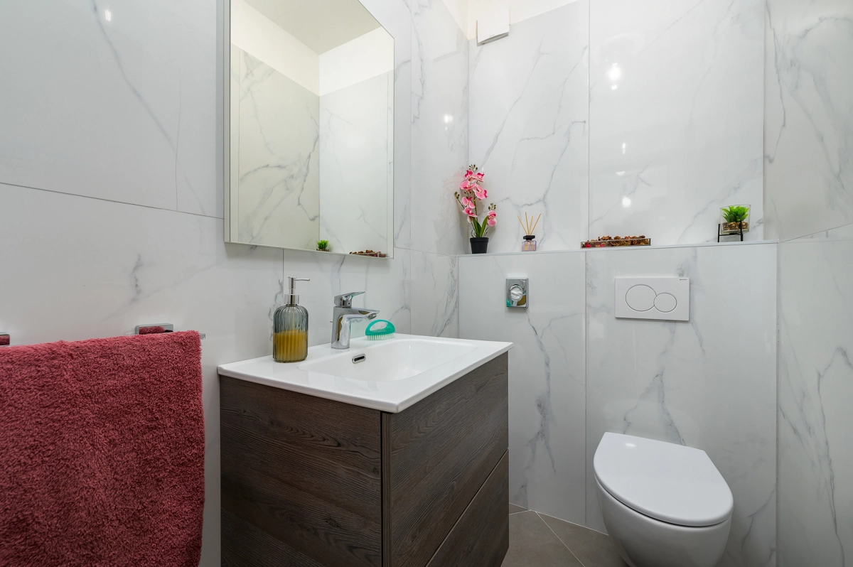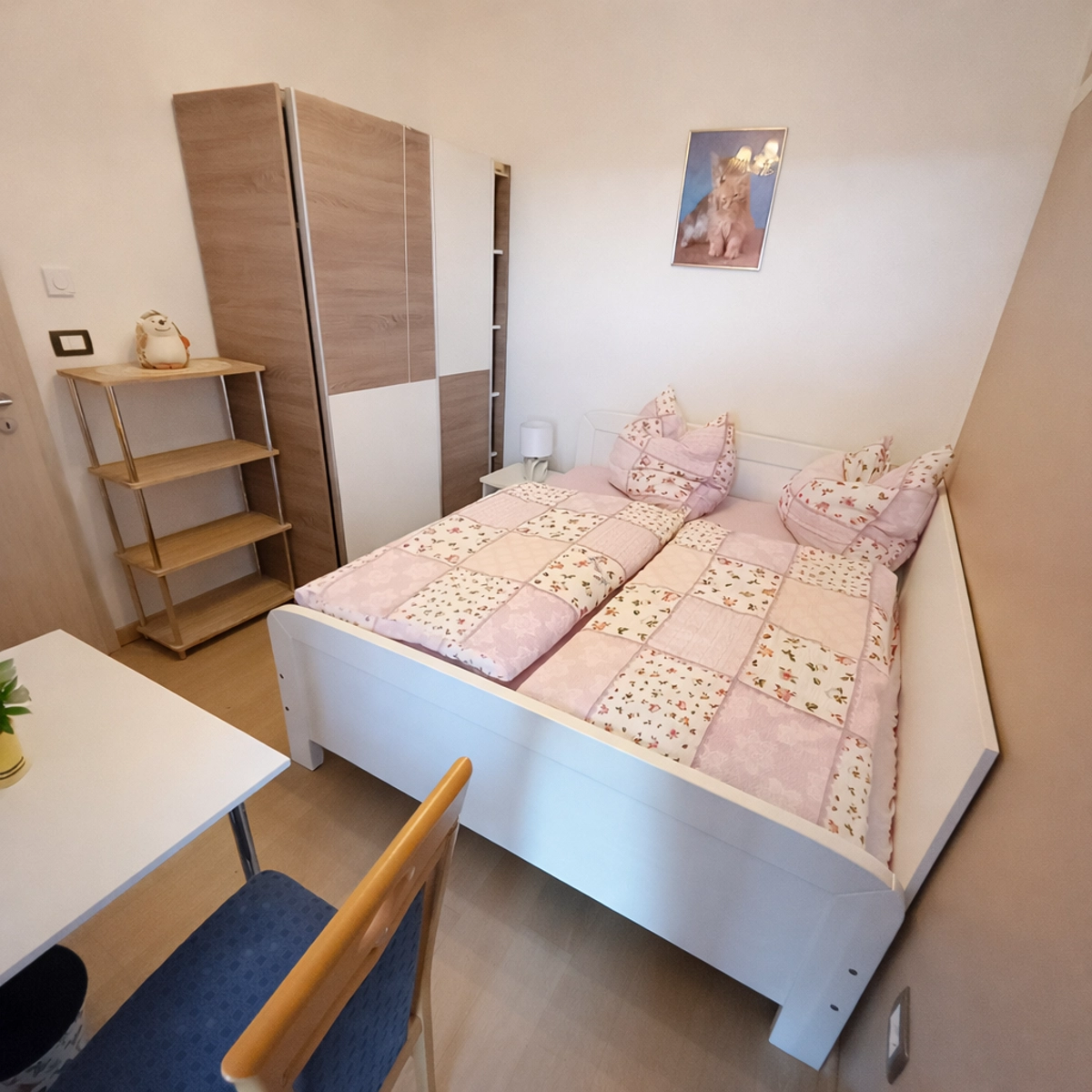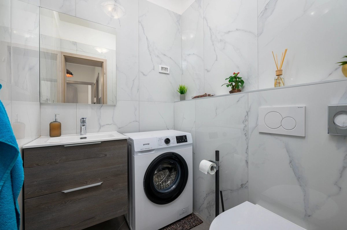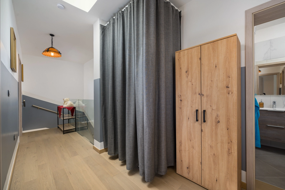 Novoizgrađena zgrada s dva velika apartmana, svaki s vlastitim vanjskim whirlpoolom, vanjskom kuhinjom s roštiljem, terasom, vrtom i privatnim parkingom. Apartmani su pažljivo uređeni i opremljeni kako bi Vam pružili maksimalnu udobnost za Vaš odmor. Nalazi se u rezidencijalnoj četvrti na kraju grada Umaga, s pogledom na polja i livade. Središte mjesta i plaže lako su dostupni pješice ako volite laganu šetnju ili za samo nekoliko minuta vožnje automobilom. Izdvojeno od gradske gužve, a opet tako blizu svih gradskih sadržaja.