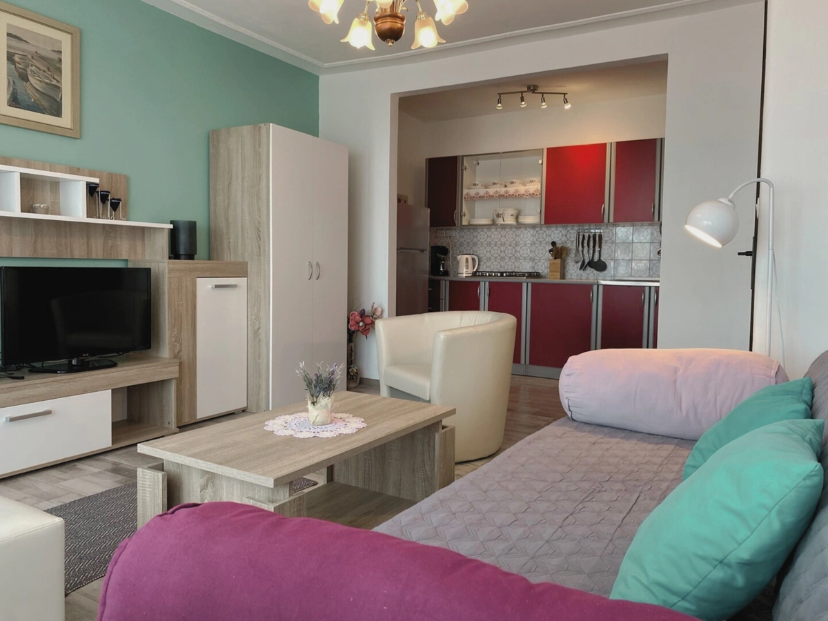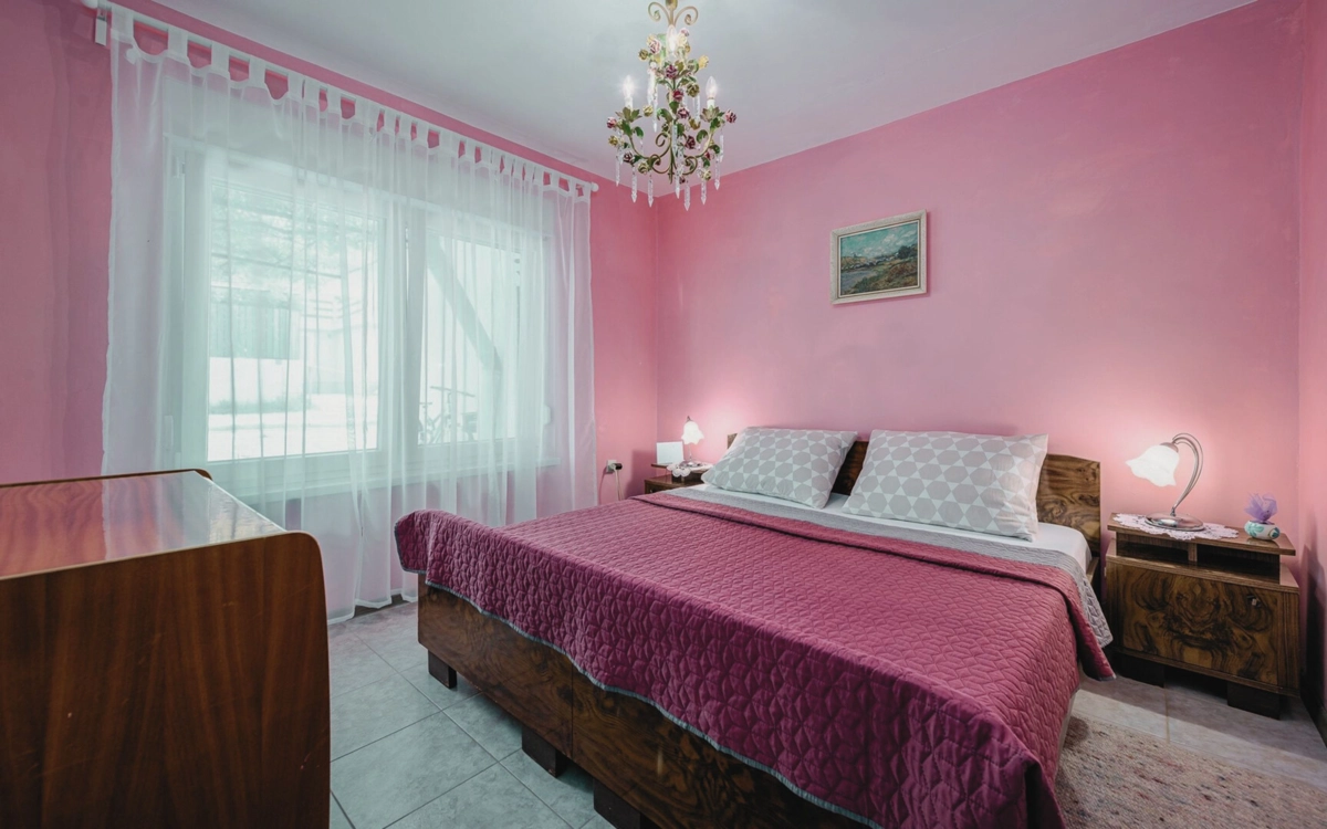 L’appartamento dispone di ampi spazi, rendendolo ideale per famiglie o gruppi. Pur essendo arredato in modo tradizionale, offre tutto il necessario per una vacanza confortevole sul mare in Istria.