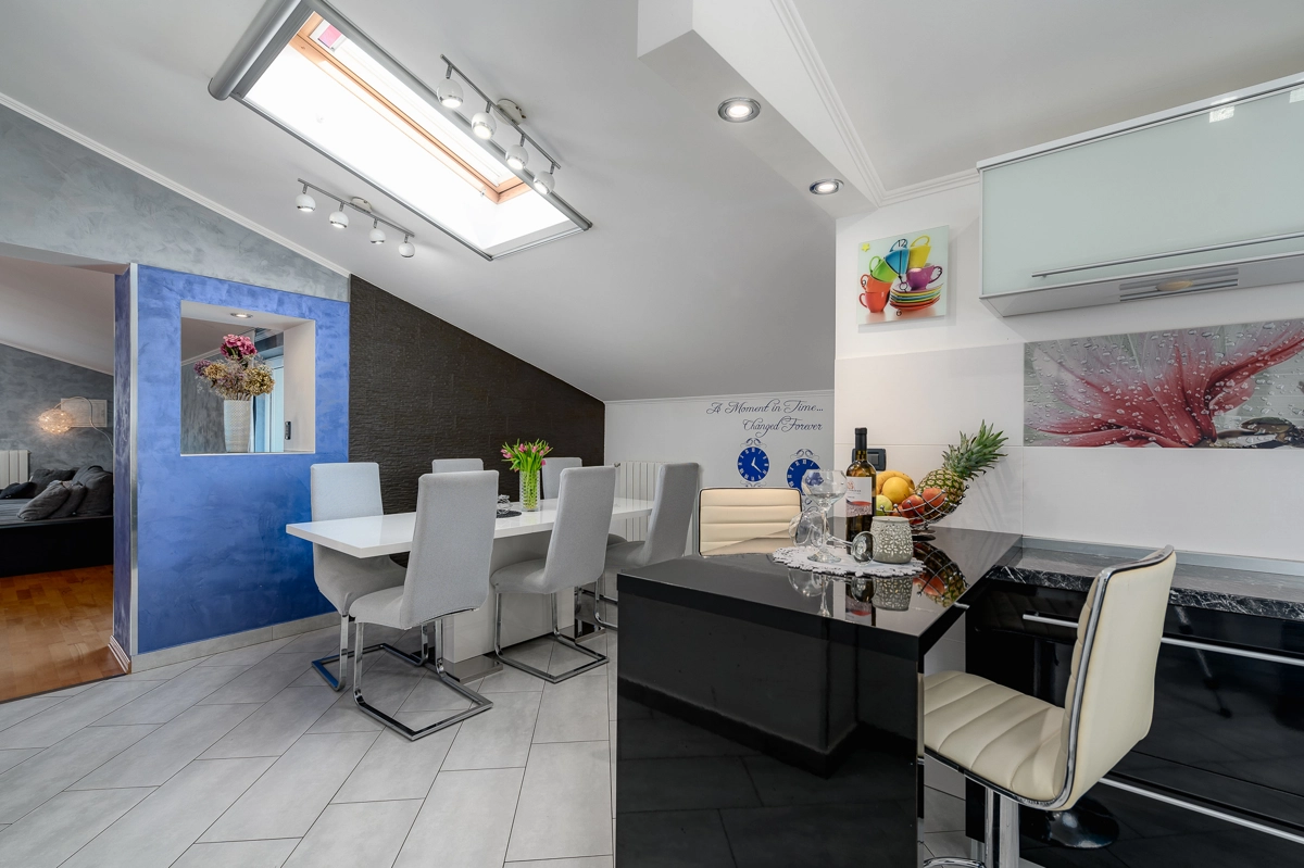 Questo spazioso appartamento si trova nella mansarda di una casa privata situata in una zona tranquilla e silenziosa a soli 3,2 km dal mare e dal centro del paese. Non appena entri nell'appartamento, sarai accolto da uno spazio abitativo luminoso e arioso con molta luce naturale. L'appartamento è arredato e decorato in stile moderno, con finiture di pregio e attenzione ai dettagli. L'atmosfera generale è calda e accogliente, facendoti sentire come a casa non appena entri. Nel complesso, questo appartamento è una scelta perfetta per chi cerca un rifugio tranquillo e confortevole lontano dal trambusto del centro città, pur essendo a breve distanza da tutti i servizi e le attrazioni che la zona ha da offrire.