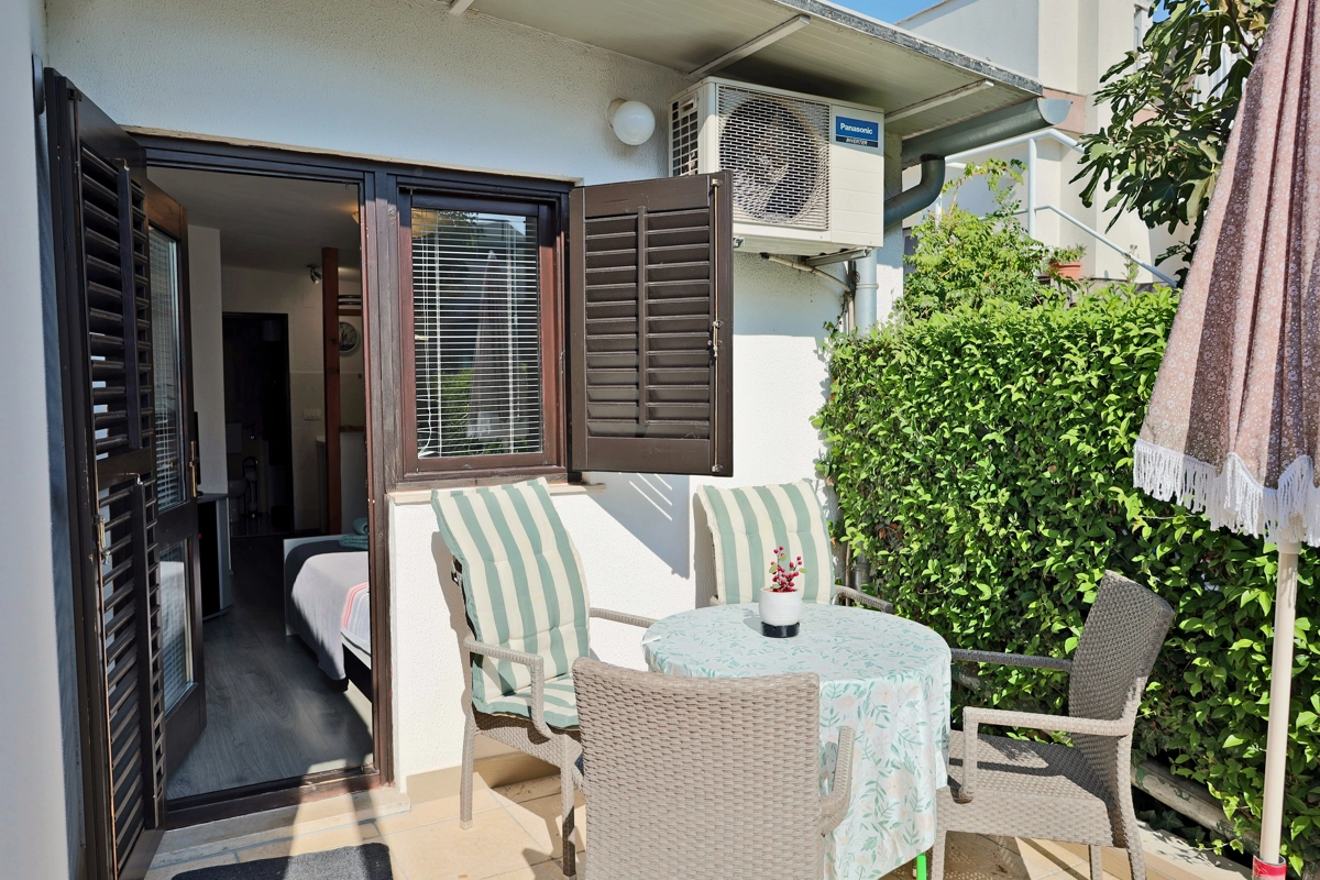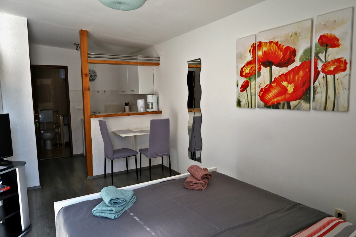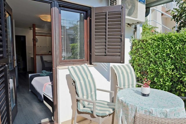 Il studio appartamento situato nella casa Rožar e' l’ideale per un soggiorno tranquillo e intimo. Questa casa gode di un'ottima location a soli 250 m dal mare e a 200 m dal centro citta. Il cortile recintato e la ben curata area circostante la casa vi assicurera la necessaria privacy e vi parra di trovarvi in un’oasi privata. La spiaggia piu vicina e quella prediletta dagli abitanti del posto e porta il titolo ufficioso di spiaggia piu bella della citta.