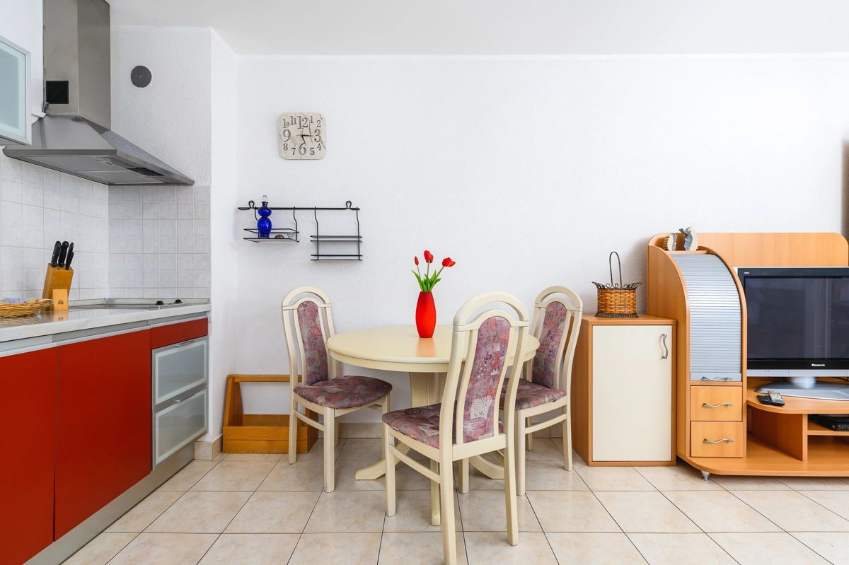 Situato al piano terra, questo appartamento offre un facile accesso all'esterno, rendendolo perfetto per chi ama trascorrere del tempo all'aperto. La terrazza è il luogo ideale per gustare una tazza di caffè al mattino o un buon bicchiere di vino la sera. Nel complesso, questo appartamento con una camera da letto e terrazza è il luogo perfetto per chi cerca uno spazio di vacanza comodo e conveniente.